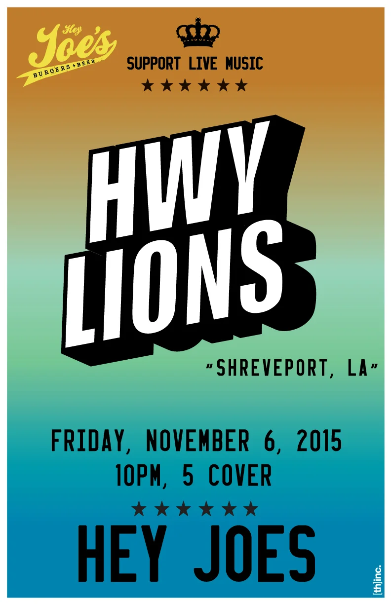 Hwy Lions will be touring in support of their sophomore full length, "The Wheel" They have shared the stage with nationals acts such as, Dawes, Of Montreal, Edward Sharpe & The Magnetic Zeros, The Features, J. Roddy Walston & The Business, Dylan Leblanc & more.