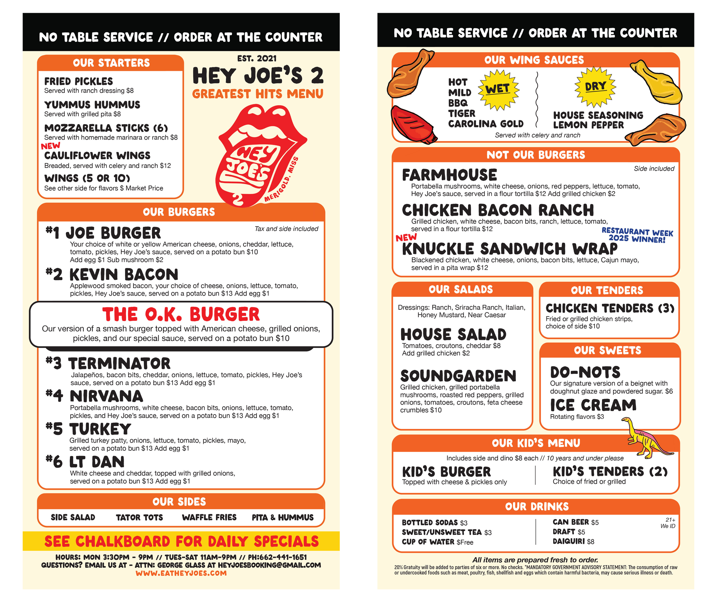 For every Burger of the Month special ordered, Hey Joe’s will donate $1 to a predetermined Charity of the Month. That’s 12 different charities every year that you can help us to help out just by ordering one of the greatest hamburgers you’ll ever eat. Giving while getting is a win win. Side included.